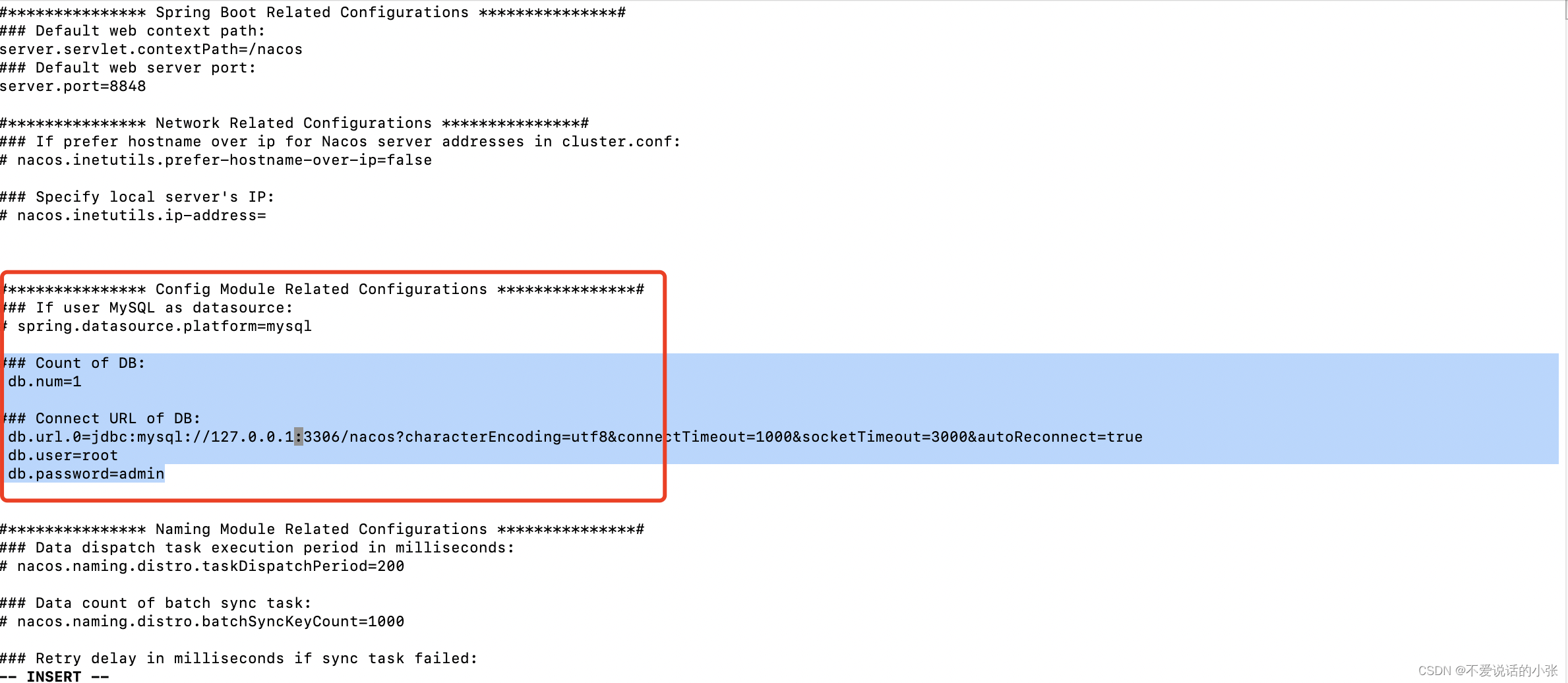 db.url.0=jdbc:mysql://127.0.0.1:3306/nacos?characterEncoding=utf8&connectTimeout=1000&socketTimeout=3000&autoReconnect=true