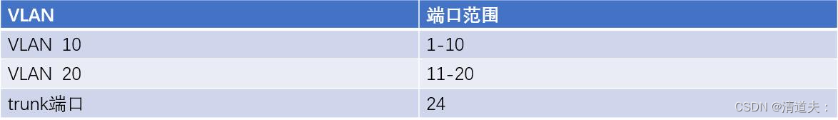 1.在switch_A和switch_B分别划分两个VLAN :VLAN 10和VLAN 20,端口的规划如下表所示: