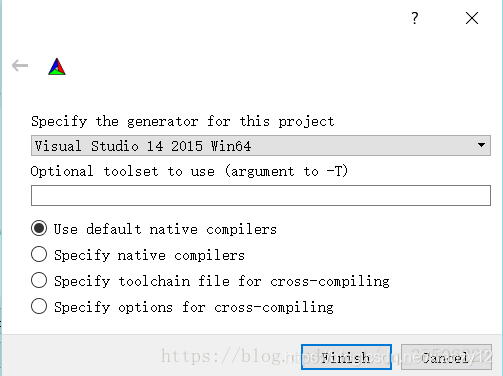 点击下方“Configure”,将弹出VS版本选择,点击Finish,等待: