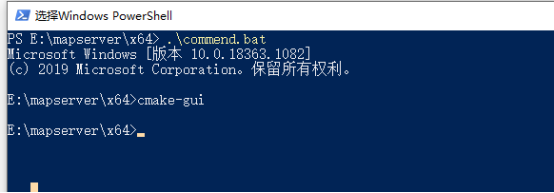 在当前目录下按住shift键不放,右击鼠标选择 “在此处打开power shell 窗口(s)” ,输入下面命令进入cmake窗口。
