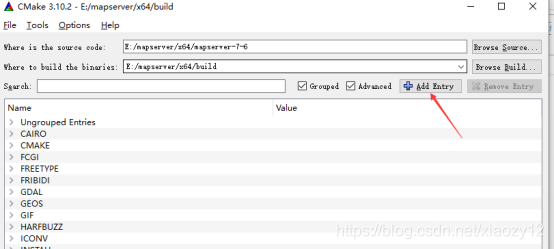 第二种方法,在cmake-gui界面进行添加,点击Add Entry: