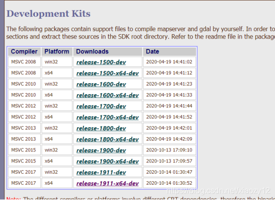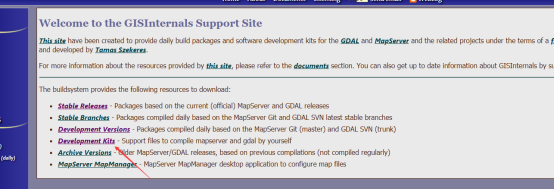 登录Gisinternals网站https://www.gisinternals.com,会看到有多个资源可供下载,选择Development Kits下载,看它后面的介绍是用于编译mapsever的。