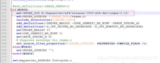 解决这个问题,有两种方法,第一种,是在cmakelist.txt给REGEX_DIR进行赋值,如图: