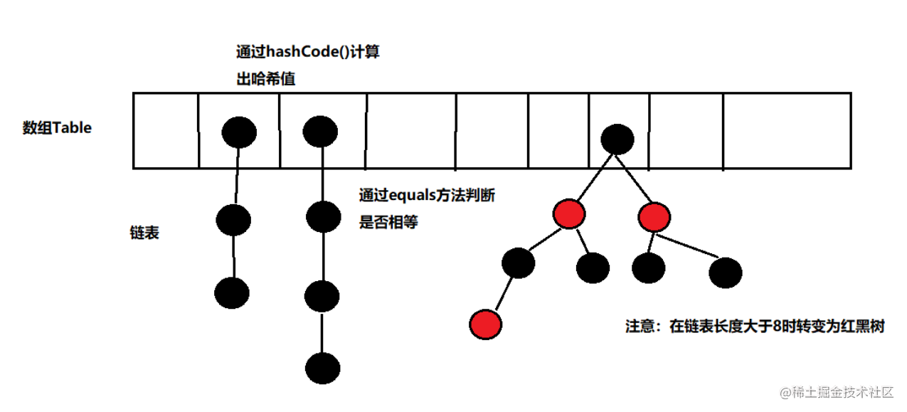 HashMap采用Node(implements Map.Entry)数组来存储key-value对,每一个键值对组成了一个Node实体,Node类实际上是一个单向的链表结构,它具有Next指针,可以连接下一个Node实体。