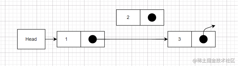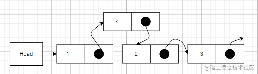 这里将元素1的指针由指向元素2改为指向新增元素4,然后再将元素4的指针指向元素2即可。