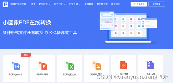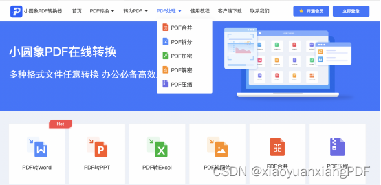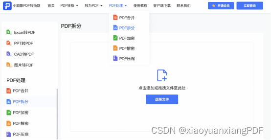 首先,我们找到小圆象PDF转换器的官网,然后找到首页上方【pdf处理】的【pdf拆分】即可。