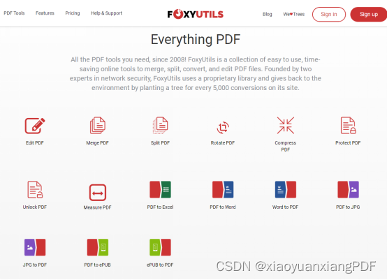 Foxyutils是一个成立于2008年的PDF文件编辑网站,提供PDF文件格式转换、PDF合并、PDF加密等服务。进入网站之后,只需要点击“Merge PDF”按钮,按照提示进行操作就可以把多个PDF文件合并成同一个。不过该网站只有外文版,不支持中文显示,所以使用起来有一定的门槛。如果英语不过关,看不懂操作提示,那最好还是使用推荐的第2种方法,更加方便。