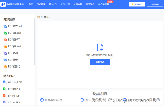 进入小圆象PDF转换器在线网站,点击【PDF合并】,按照要求上传PDF文件,然后根据自己的需求选择合并,网站会在数秒内自动完成合并,生成合并后的PDF文件。