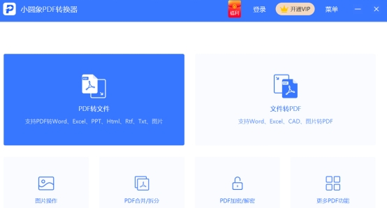 小编在办公时是离不开办公软件的,所以一款顺手好用的软件是非常关键的,这款小圆象PDF转换器真的会让小编的办公效率变得很高,它有很多好用的功能,不仅可以快速的转换PDF文件的格式,而且可供转换的格式还非常多,例如PDF转Word、Excel、PPT、图片等,还可以将文字进行识别,然后转换成PDF文件,真的非常好用,下面就来讲述一下转换步骤!