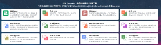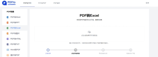 第一步:首先进入PDFto的主页,然后在主页可以看到很多基本的转换功能,我们需要选择其中的PDF转Excel的功能,然后进入下一步。