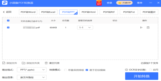 运用专业的转换软件就可以轻松的实现PDF转PPT的操作,小圆象PDF转换器不仅可以快速的将文件格式轻松转换,还能保证文件的高质量,从而达到完美转换,而且在转换的同时,还会保证文件的安全,整个过程操作起来非常流畅,除了这个功能,这个软件还可以转换其他格式的文件,例如word、Excel等格式的文件,而且转换后文件不过出现乱码、内容混乱的问题,还可以进行PDF文件的在线处理,同时还可以免费试用,试用后,也可以开通会员继续使用,价格也是十分划算的!
