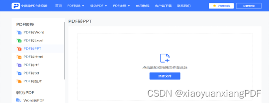 步骤一:进入小圆象PDF转换器官网(网址:https://www.xiaoyuanxiang.cn/),点击“PDF转PPT”选项。