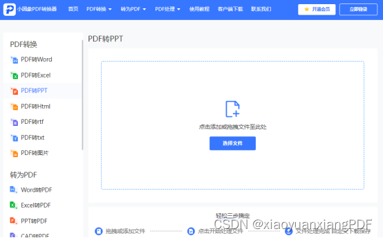 除了功能强大之外,小圆象PDF转换器还提供专业的数据安全保障,我们不用担心文件内容的安全问题!在网页上进行在线转换非常简便,具体操作步骤如下: