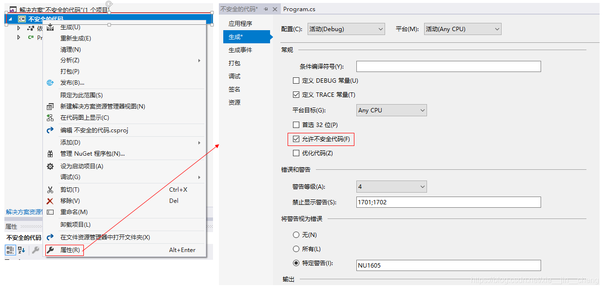 4 环境设置(使用不安全的代码需要对工程环境进行设置)