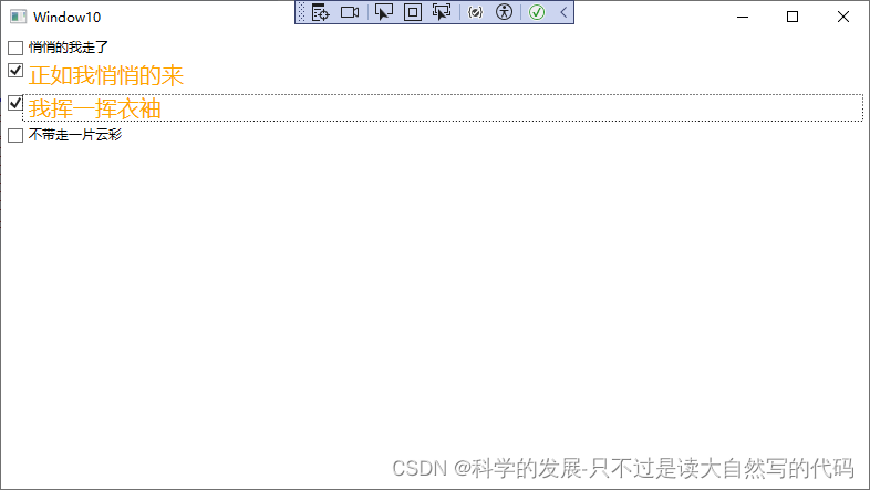 <CheckBox Content="悄悄的我走了" Margin="5"/>