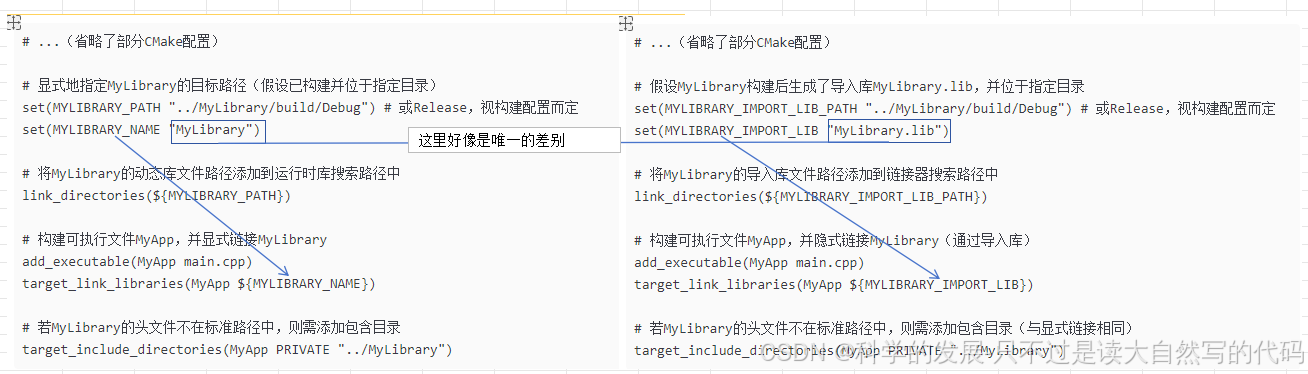 .lib文件在链接时可用,并且.dll文件在运行时可用。 - 在这个例子中,我们没有使用CMake的