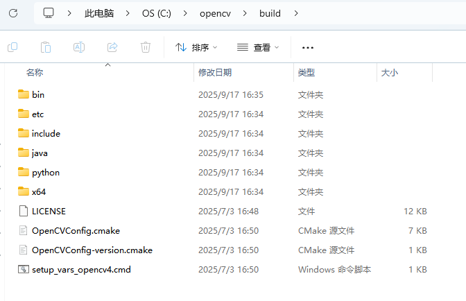 - 解压文件:双击下载得到的exe文件,选择一个目标文件夹进行解压。解压完成后,会得到一个包含OpenCV库文件的文件夹,其中