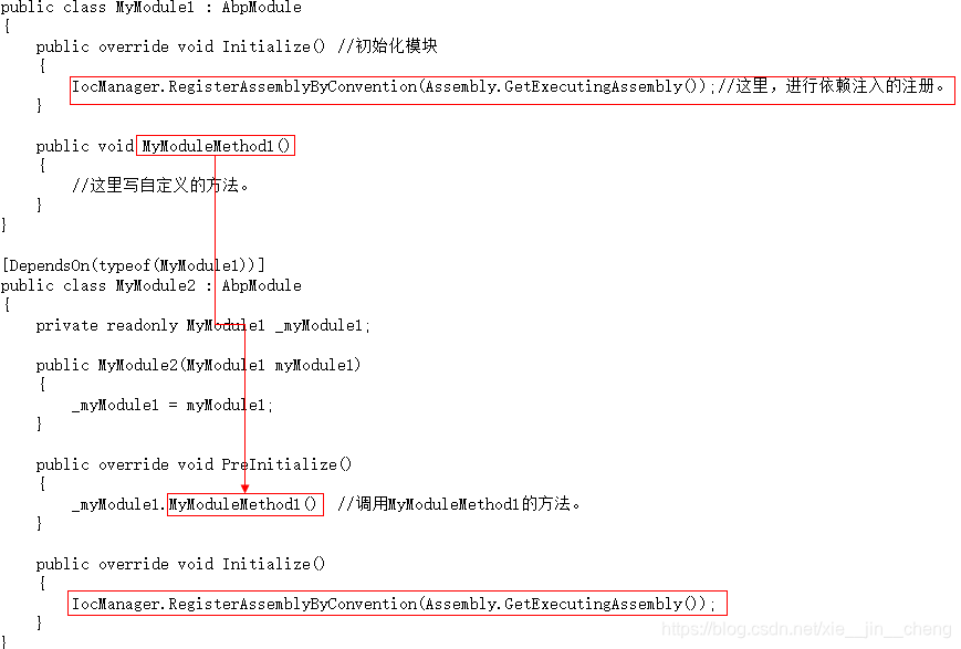 _myModule1.MyModuleMethod1(); //调用MyModuleMethod1的方法。