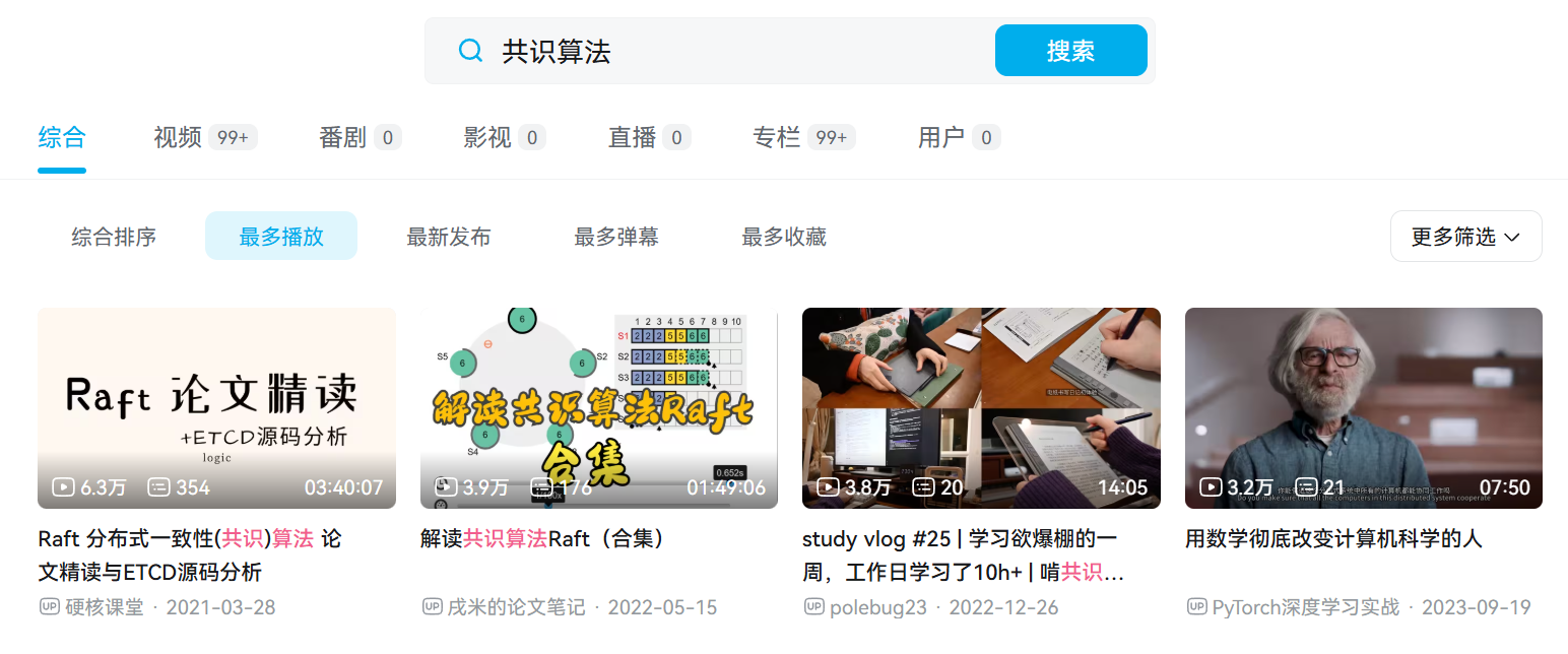 于是我在 B 站大学上搜索了“共识算法”这个词: