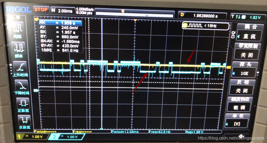 2、 探头的衰减比:大衰减比的探头会使得小信号幅度更加微弱,甚至淹没在示波器底噪声里,所以应该尽量使用1:1衰减比的探头。