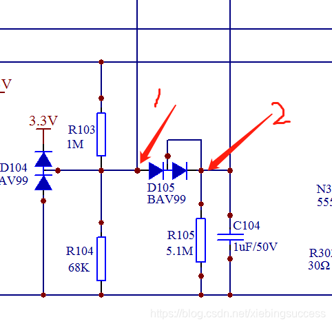 C103电容为跟单片机供电的电源电容,如果C103放电不干净,后端的单片机会处于不正常工作状态,所以要加调电复位功能。