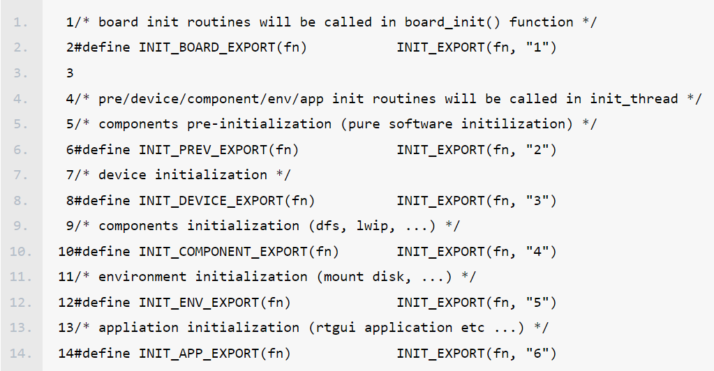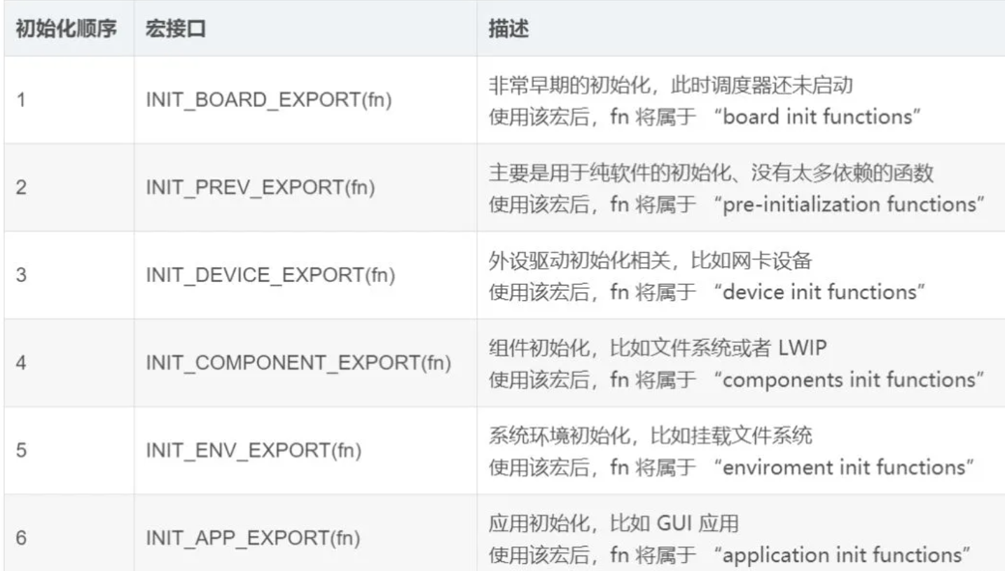 到INIT_DEVICE_EXPORT(fn)到INIT_COMPONENT_EXPORT(fn)、INIT_ENV_EXPORT(fn)、
