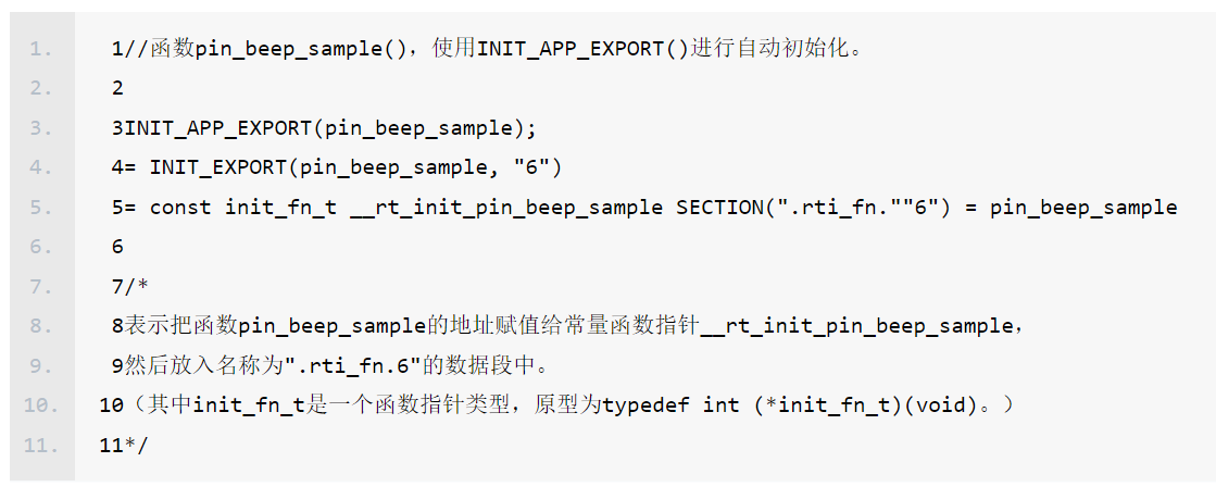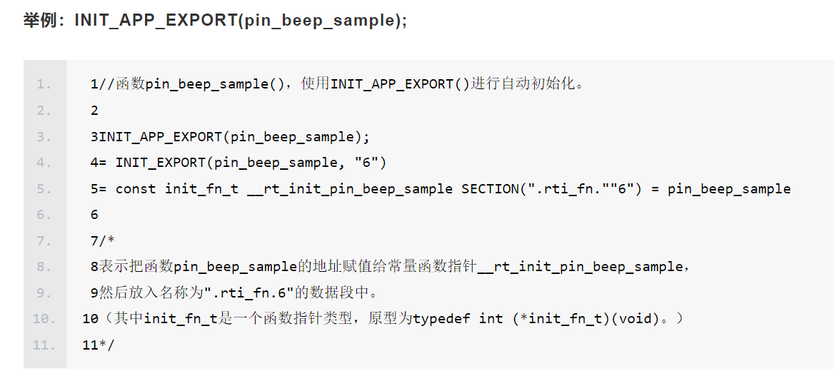 还是上面 INIT_APP_EXPORT(pin_beep_sample); 的例子。