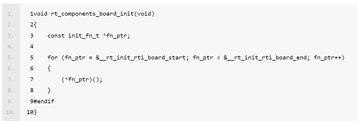 非调试模式下rt_components_init():for循环会遍历位于__rt_init_rti_board_end