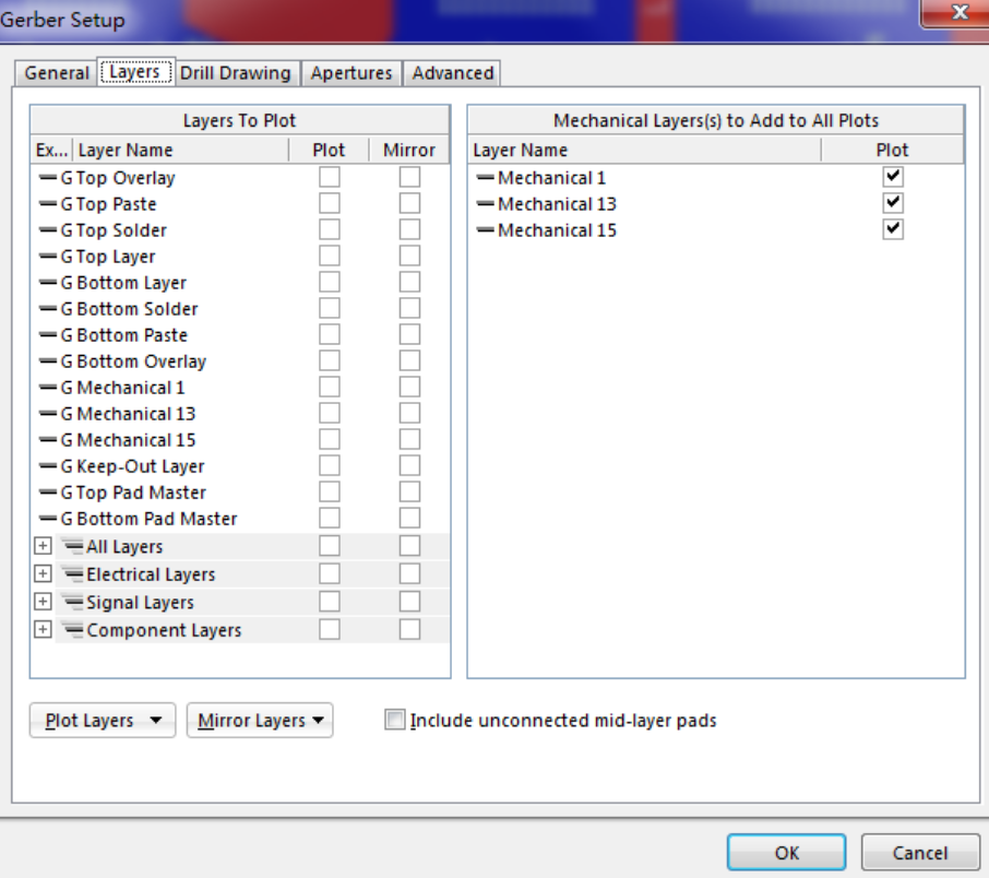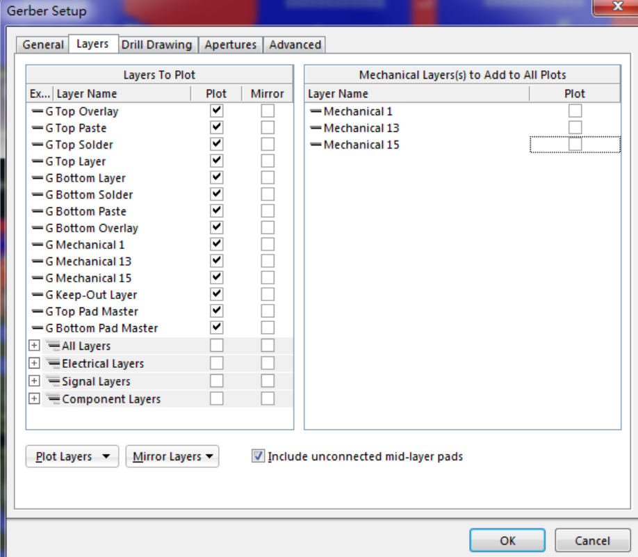 1)、选择你要导出的层对。一般选择“Plot all used layers pairs” ,“Mirror plots” 不选。