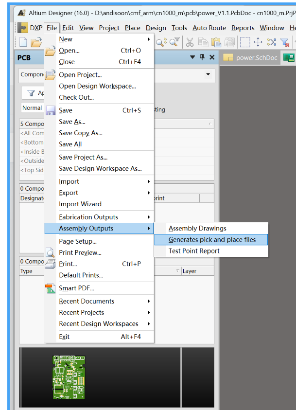 最后生成坐标文件,跟前面三次生成的文件打包压缩,送到PCB加工厂。