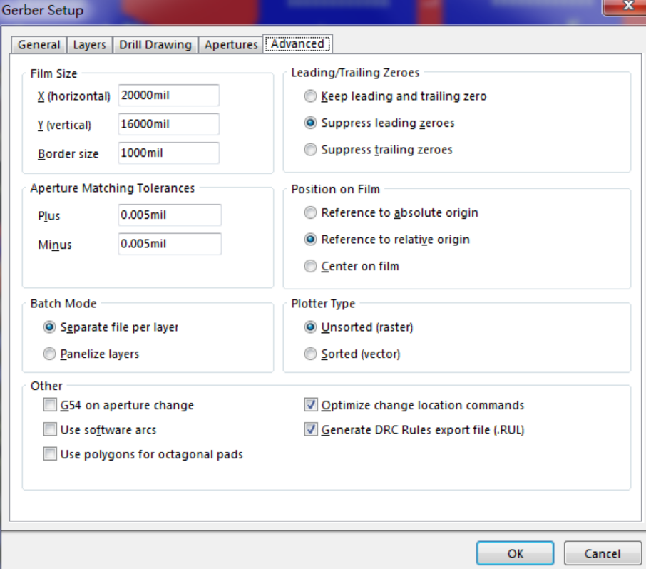 设置和Gerber Setup 的“高级”选项卡要保持一致]