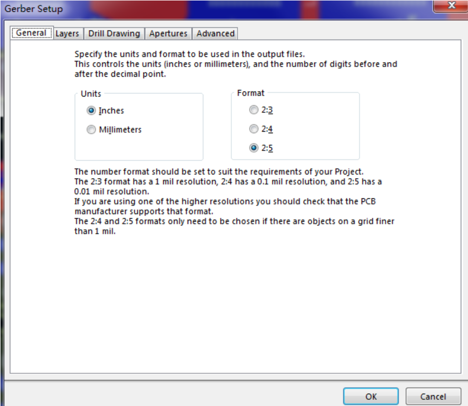 2)、”Format”选择2:5 (这个尺寸精度比较高,当然,也要先和制板加工厂协商确定精度)。