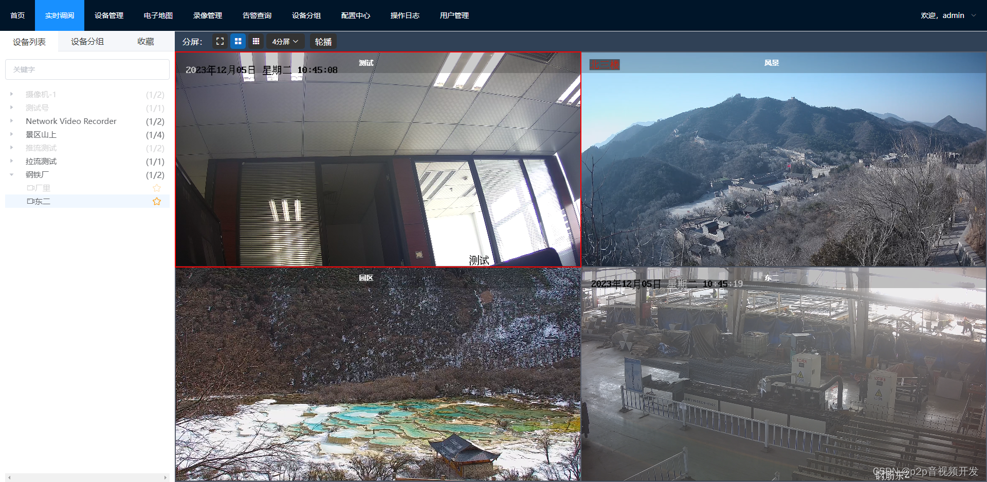 实现互联网直播就需要将安防摄像头或硬盘录像机上的视频流转成互联网直播常用的RTMP、RTSP、HTTP-FLV、HLS、WEBRTC等流格式再分发给用户端进行直播。