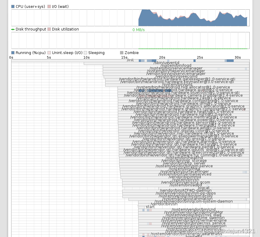 它由 bootchartd 服务和 bootchart-render 两部分组成,后者主要负责生成启动流程的分析结果图。