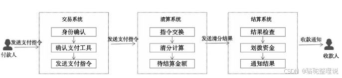 支付过程可以分为三个阶段:交易、清算和结算,这是支付的标准化流程。所有支付都可以通过这个标准过程推演出来,具体而言: