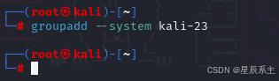 groupadd --system 组名 groupadd --system kali-23这个命令会创建一个名为 组名 的系统组。