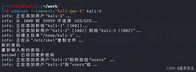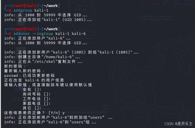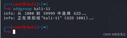 addgroup 组名 addgroup kali-11这个命令会创建一个名为 组名 的新组。