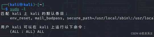 这个命令列出当前用户的sudo权限,显示该用户能以什么权限执行哪些命令。