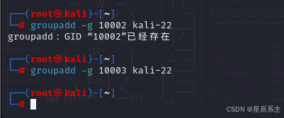 groupadd -g 1000 组名 groupadd -g 10003 kali-22这个命令会创建一个名为 组名 的组,并指定其 GID 为 10003。