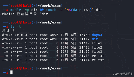ls -l:列出当前目录下的文件和目录的详细信息。