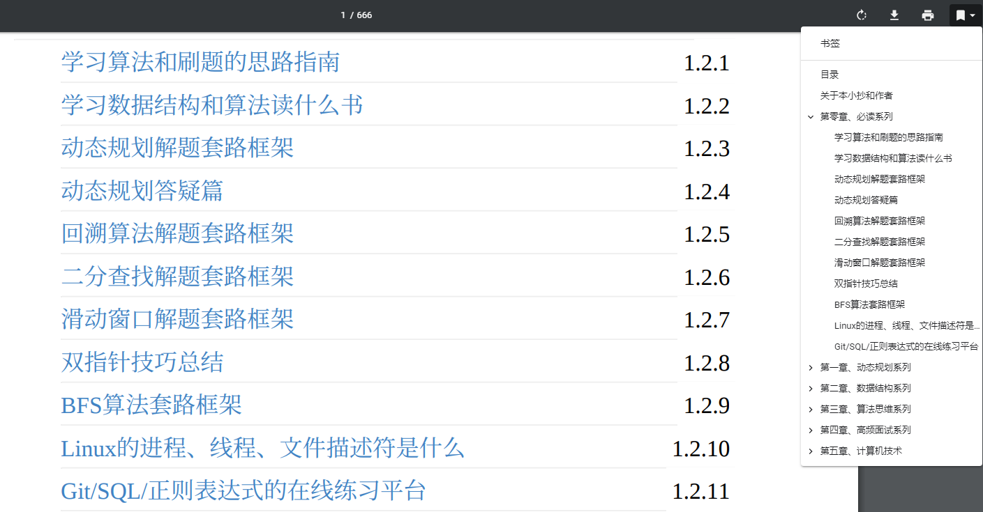 该文档的内容全部选自 LeetCode 和牛客网的原题,你只要按照文章顺序刷题,保你一个月速成算法。 还在为动态规划系列问题发愁吗?书中给动态规划总结出了一套框架模板,还有整整一个章节教你如何套模板做题,让我们来看看如此高star的文档内容: