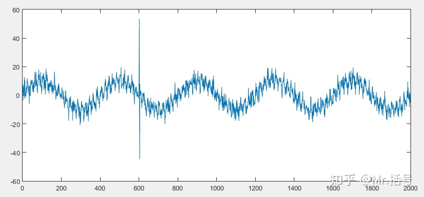 y = 10*sin(2*pi*0.5*t)+3*sin(2*pi*10*t)+1*sin(2*pi*20*t)+3*randn(1,length(t)); %生成信号