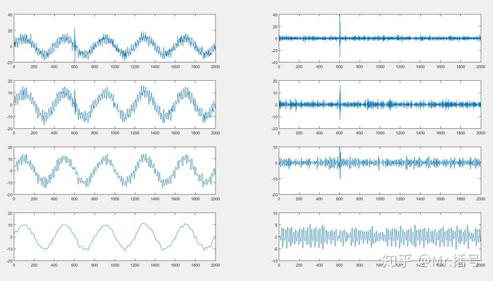 左侧四行是1~4阶的近似信号,右侧四行是1~4阶的细节信号。