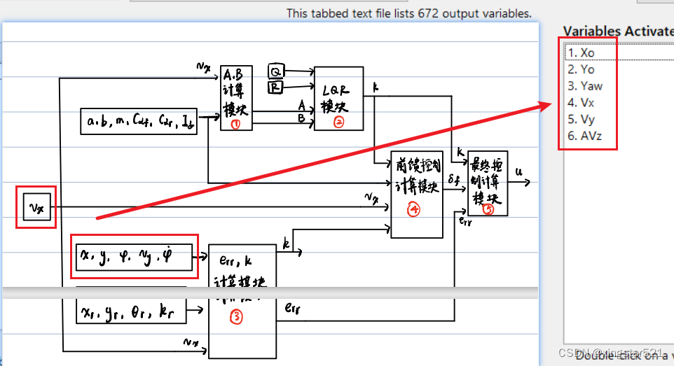 3:控制需要的量,状态量x,y,fa,vx,vy,fa_dot. 以及规划的 xr,yr,切线与x轴的夹角θr,曲率kr