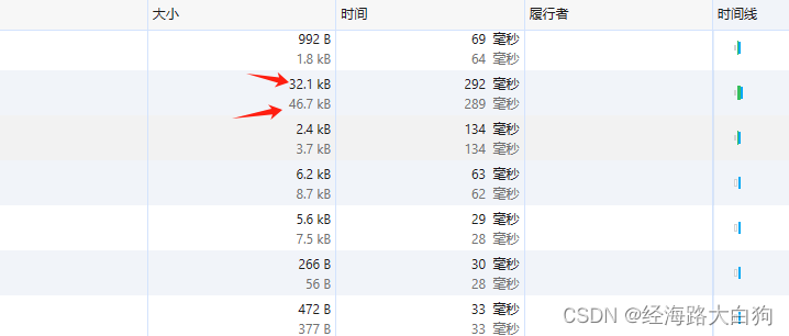 但例如gif图片,JS文件,CSS文件这种特殊的传输数据,其实你会发现,他们在下载之前,是经过服务器压缩过的,区分resource size和transferred over network的体积。