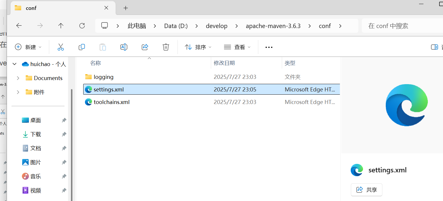 (2)进入conf文件夹,右键选择settings.xml文件,选择记事本或vscode打开都可以