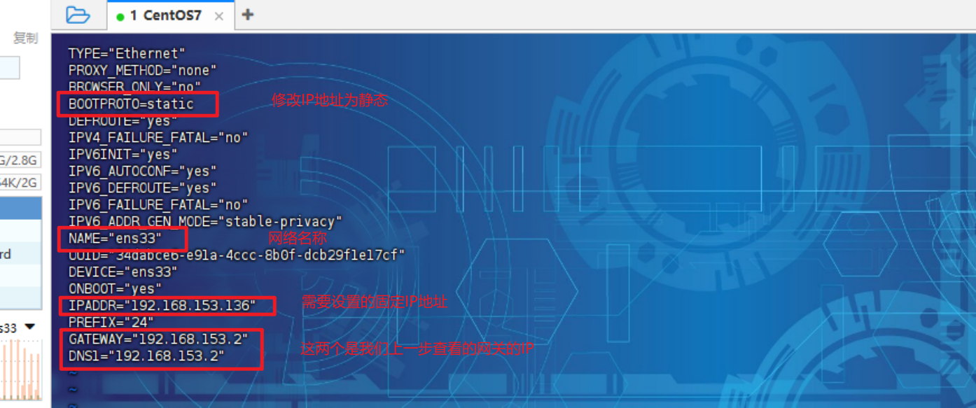 vi /etc/sysconfig/network-scripts/ifcfg-ens33