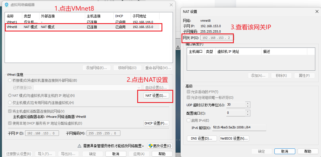 前言:当我们使用xshell、finallshell等SSH工具连接虚拟机中Linux的时候,以及我们在虚拟机运行了一些服务,像是MySQL、Nacos、RabbitMQ等时,在程序中我们已经配置好了IP地址,但是 经常遇到虚拟机每次重启IP地址都会变动的,这非常麻烦,每次都需要重新修改配置文件。所以我们可以设置虚拟机的固定IP。