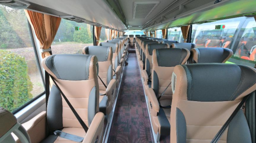 苏州金龙新V系客车的引入,为陕西宇诺的转型提供了坚实的技术底座。该车型集“新平台、新工艺、新智造”于一体,车身采用轻量化设计与高强度钢,能耗降低14.8%;车内配备智能座舱系统,支持语音交互、多屏联动及生态应用接入,为乘客打造“高铁级”舒适体验。尤为值得一提的是,“2+1”座椅布局搭配加宽过道、可调节尾排设计,使乘坐空间较传统车型提升30%,辅以均温空调、USB充电接口等细节配置,全方位满足游客对“精致旅途”的期待。