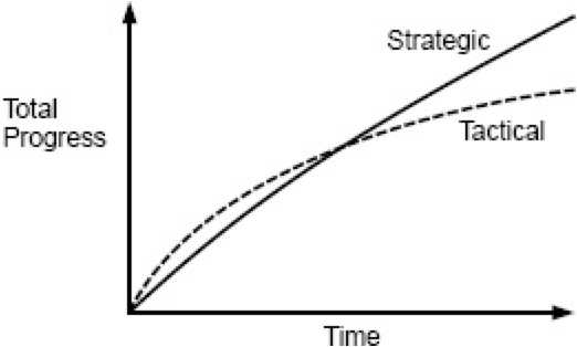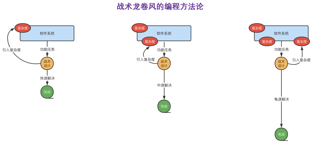 但不可否认,他一定是当前最快的。这就是战术设计的特点之一,永远按当前最快速交付的方案进行推进,甚至很多组织鼓励这种工作方式,为了使功能更快运作,只注重短期收益而忽略长期价值。